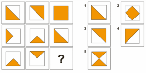 Matrizen: Welche Figur passt in das leere Feld mit dem Fragezeichen?