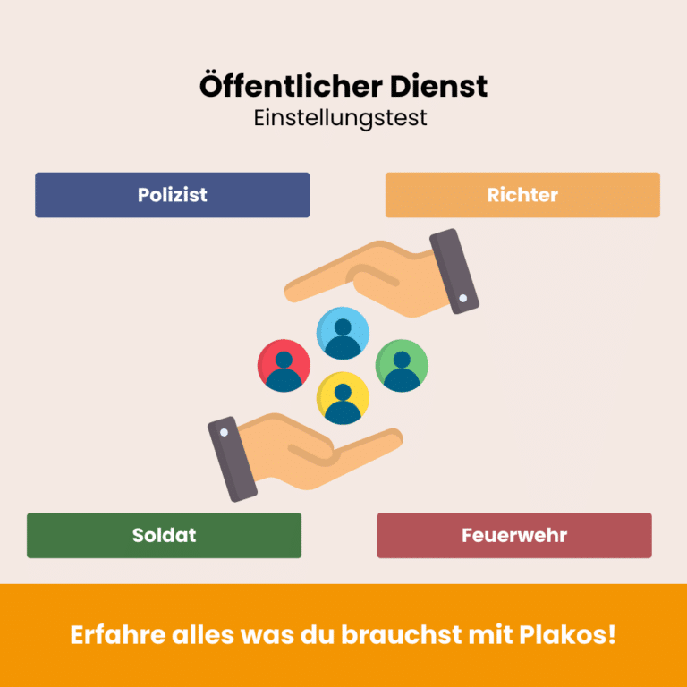 Hole dir wertvolle Tipps und Übungen mit Lösungen für den Einstellungstest Öffentlicher Dienst bei einem der führenden Testanbieter Plakos.