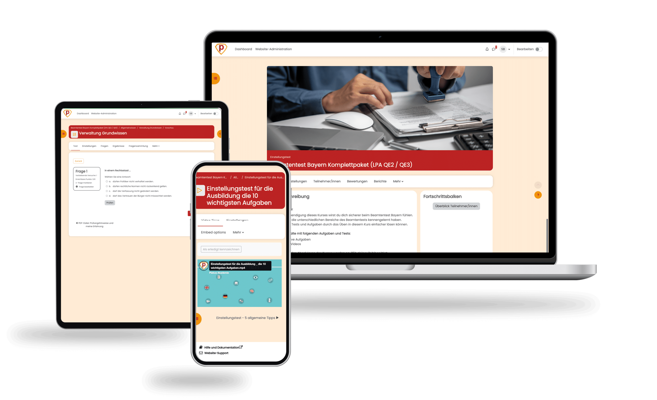 Wir bereiten Dich in unserem Kurs optimal auf den Beamtentest Bayern / LPA Test vor. Unser Testtrainer enthält nicht nur hunderte Übungsaufgaben und interaktive Tests mit Lösungen, sondern auch wertvolle Erklärvideos und Insidertipps, die Dir helfen, bestens vorbereitet zu sein.