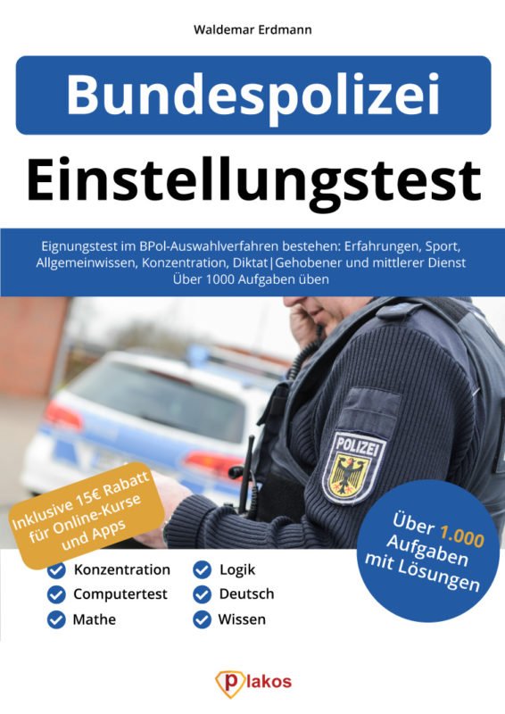 Aufgrund der hohen Bewerberzahlen bei der Bundespolizei ist die Durchfallquote extrem hoch. Wir haben daher ein Buch entwickelt, das Dir bei Deinen Vorbereitungen auf den Test helfen soll. Du möchtest Karriere bei der Bundespolizei machen? Du möchtest den Bundespolizei-Einstellungstest bestehen? Dann empfehlen wir Dir dieses Vorbereitungsbuch!