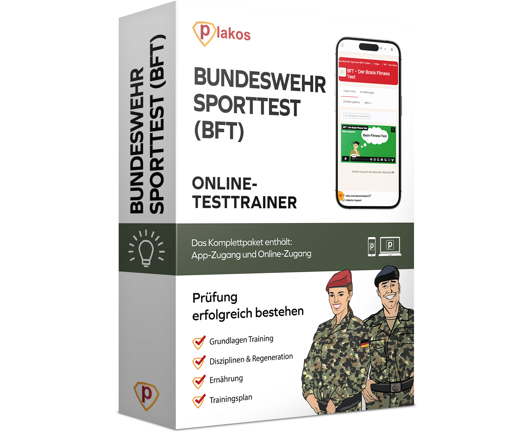 Der Bundeswehr Basis-Fitness-Test (BFT) ist ein entscheidender Bestandteil der Eignungsprüfung für die Bundeswehr. Deine Fitness und körperliche Leistungsfähigkeit werden auf die Probe gestellt, und in diesen Momenten zählt jede Sekunde. In unserem neuen Kurs lernst du, wie du dich optimal auf den BFT vorbereitest, um den Test erfolgreich zu bestehen und deiner Bundeswehr-Karriere den Weg zu ebnen.