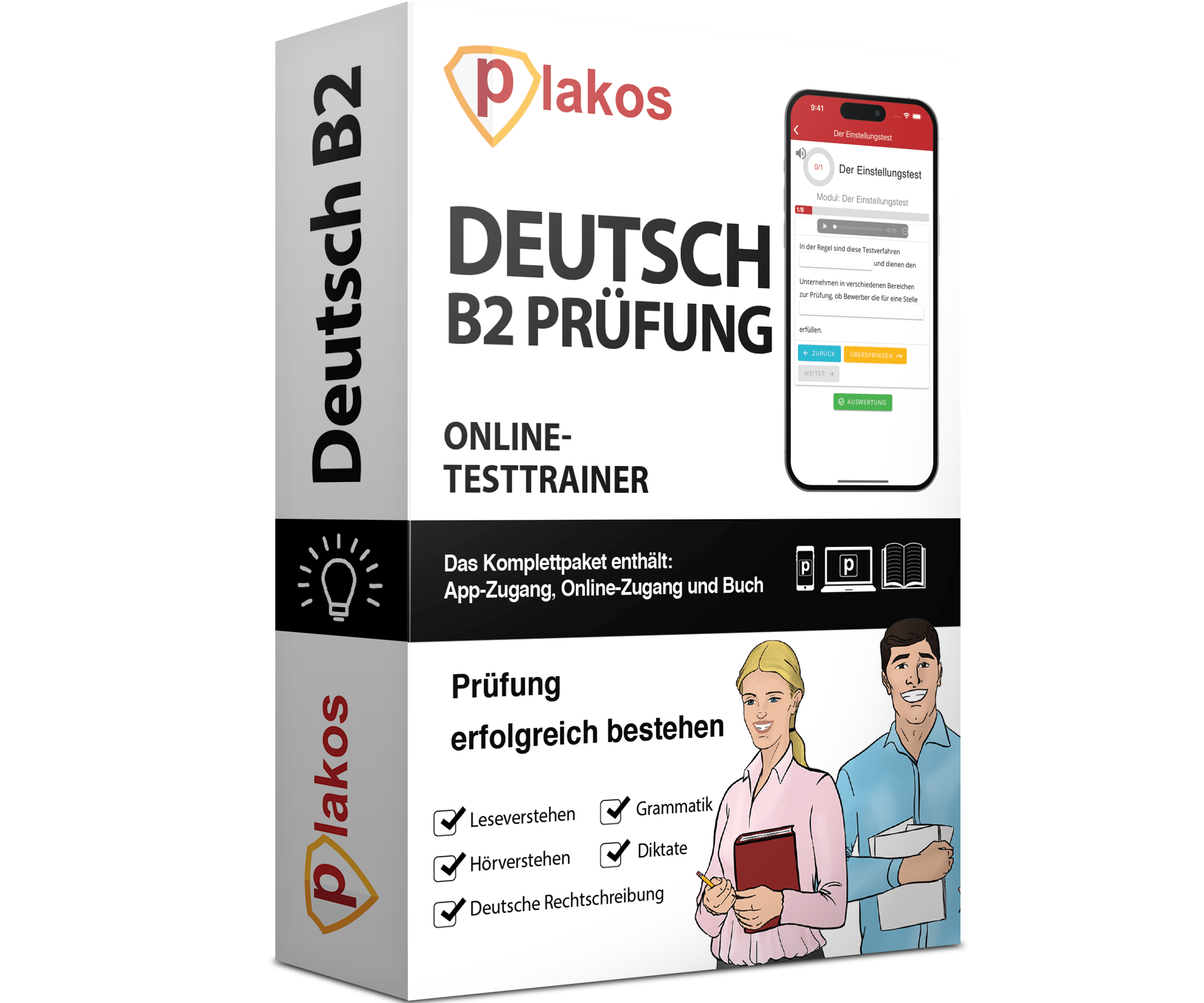 Online Prüfungsvorbereitung mit zahlreichen interaktiven Übungsaufgaben und Lerneinheiten – die perfekte Vorbereitung auf die Deutsch B2 Prüfung. Starte selbstbewusst in die Prüfung! Jetzt inklusive Plakos KI-Trainer!