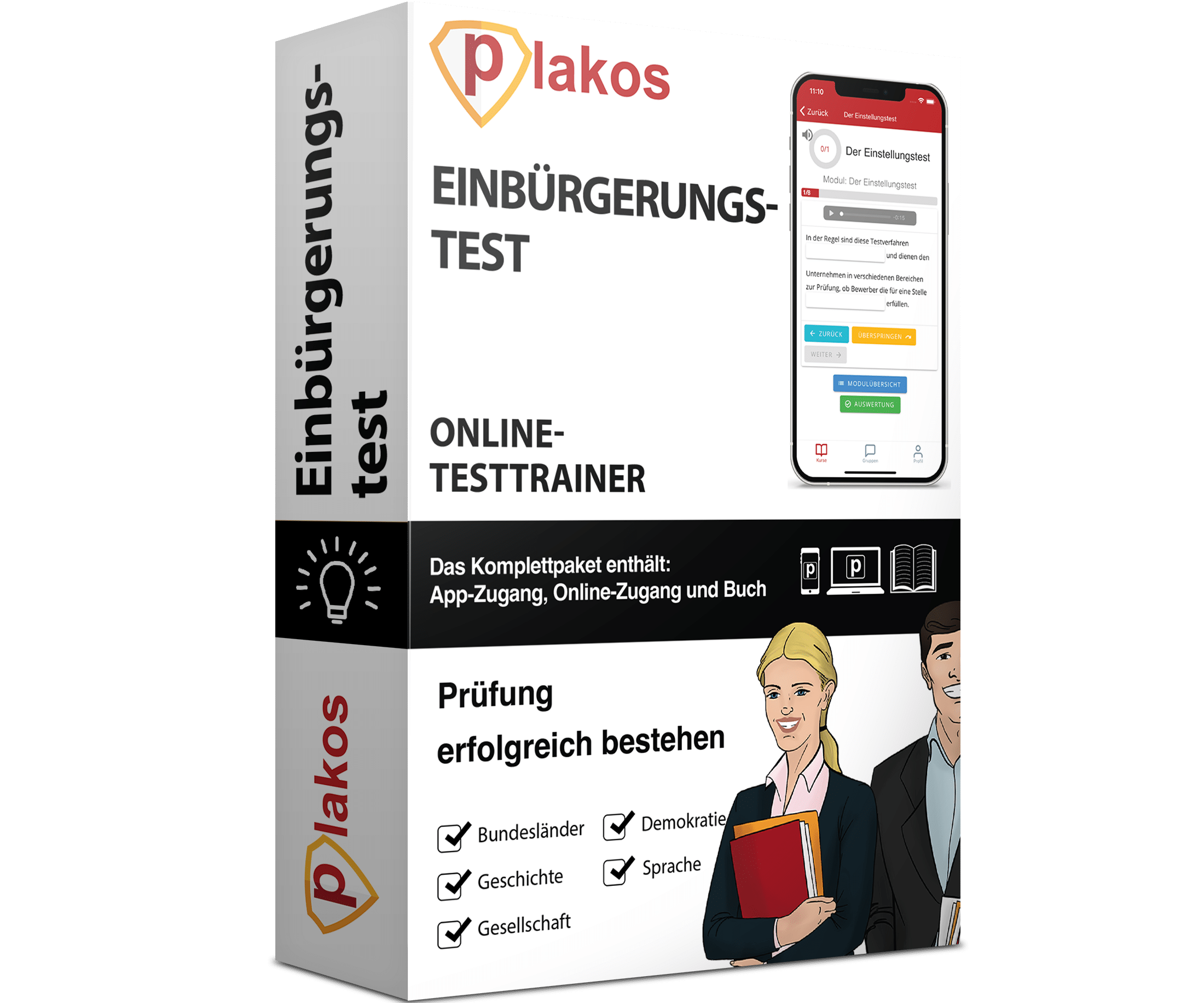 Online Test-Vorbereitung mit zahlreichen interaktiven Übungsaufgaben und Lerneinheiten – die perfekte Vorbereitung auf deinen Einbürgerungstest. Starte selbstbewusst in die Prüfung! Jetzt inklusive Plakos KI-Trainer!