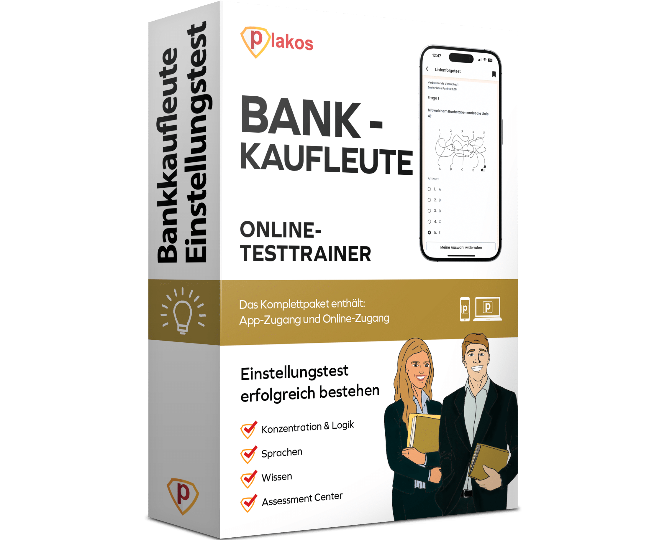 Steigere deine Chancen beim Bankkaufleute Einstellungstest erheblich durch unseren Bankkaufleute Online-Testtrainer.
