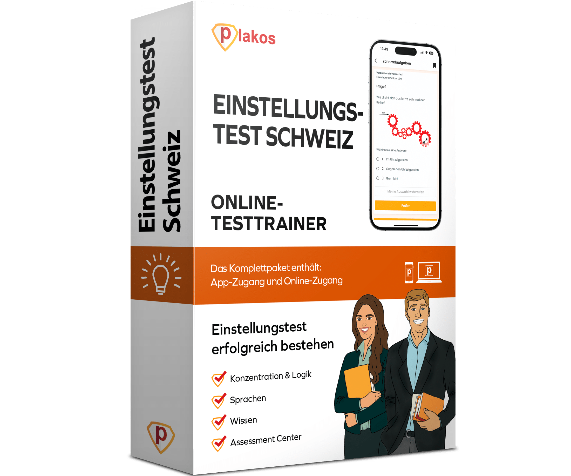 Online Einstellungstest-Vorbereitung mit zahlreichen interaktiven Übungsaufgaben und Lerneinheiten – die perfekte Vorbereitung auf deinen Einstellungstest. Starte selbstbewusst in die Prüfung! Jetzt inklusive Plakos KI-Trainer!