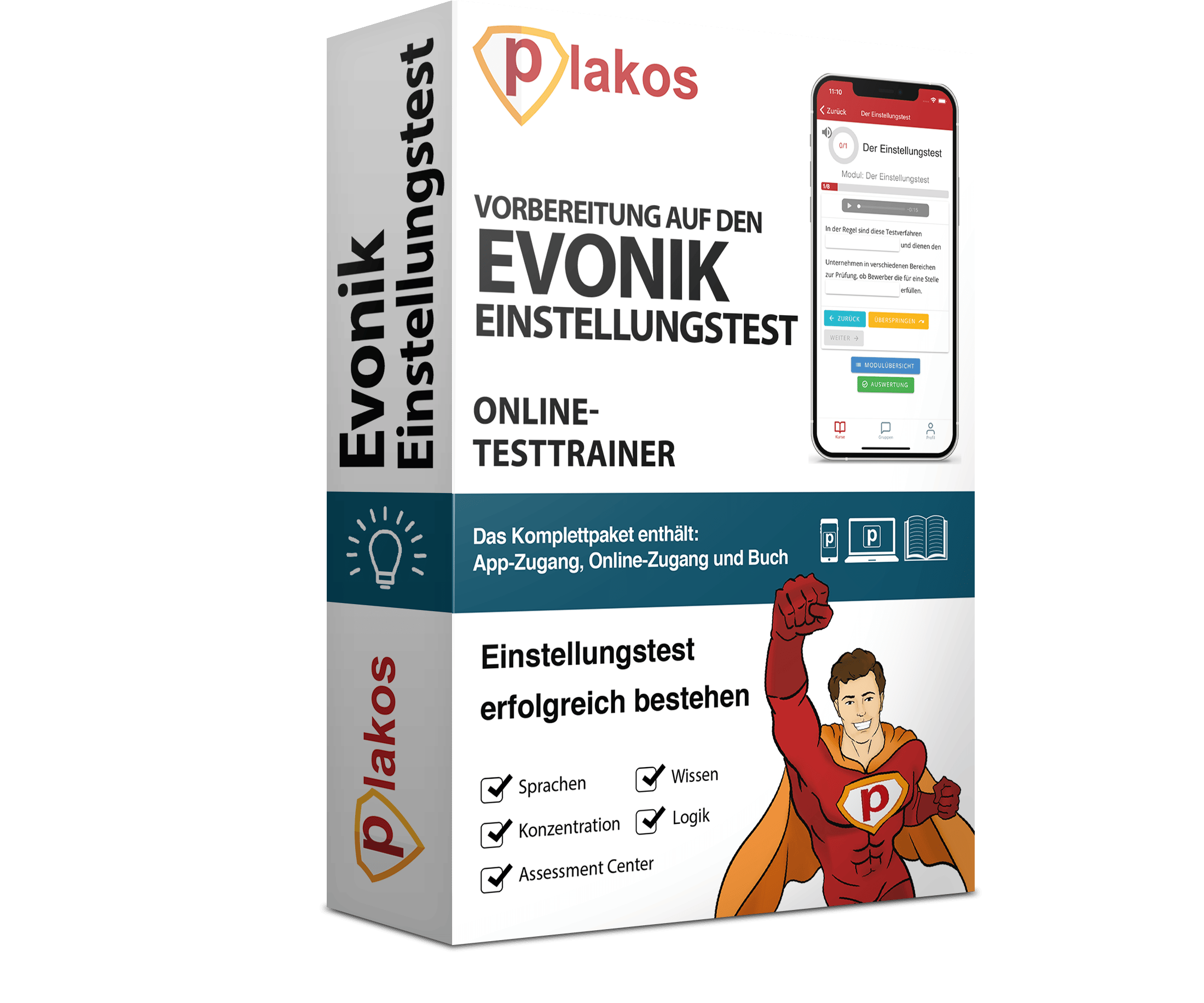 Hinweis: Der Plakos Online-Testtrainer beinhaltet keine Original-Testfragen aus dem Evonik Einstellungstest, noch wurde/wird dieser im Zusammenarbeit mit Evonik entwickelt/angeboten.