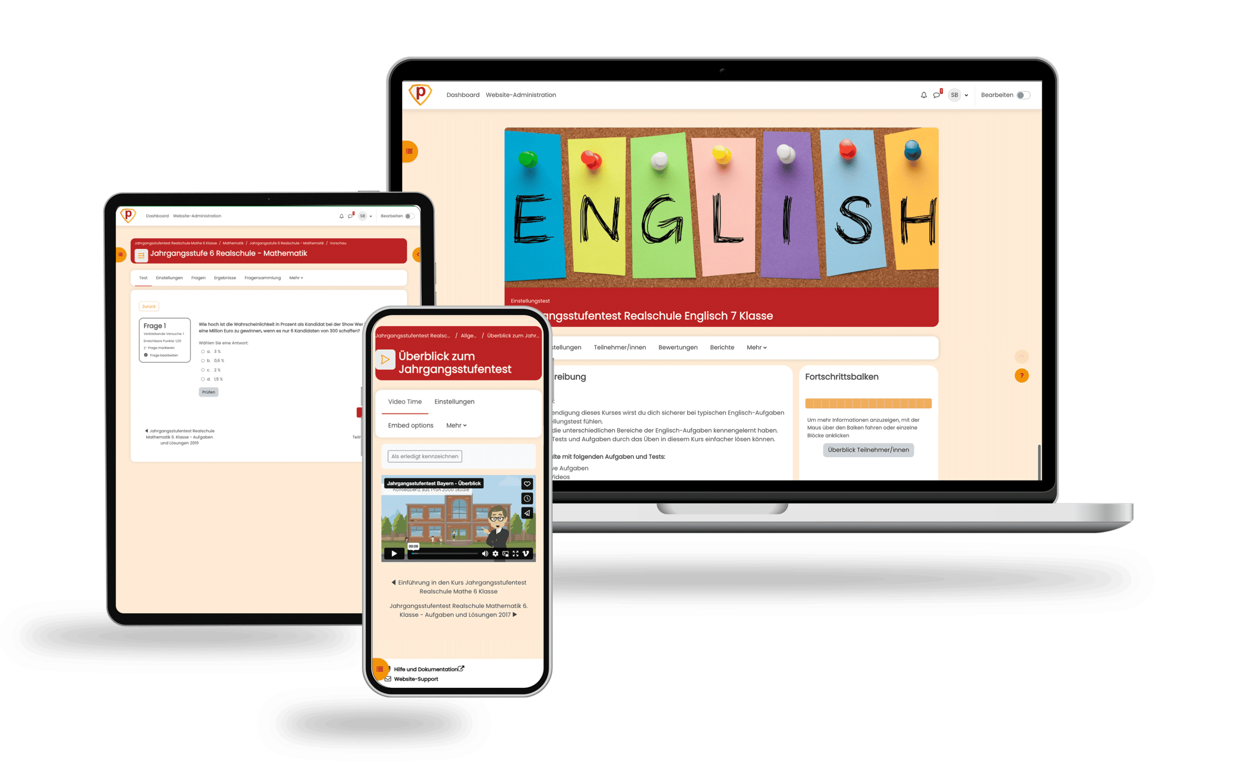 Der Jahrgangsstufentest Realschule Bayern Online-Testtrainer dient zur allgemeinen Vorbereitung auf den Jahrgangsstufentest an der Realschule in Bayern, für die Klassenstufen 6,7 und 8. Enthalten sind die Fächer Mathe & Englisch. Mit unserem Testtrainer können Schülerinnen und Schüler interaktiv und mit viel Spaß für den Jahrgangsstufentest üben und so im Test ein besseres Ergebnis erzielen.