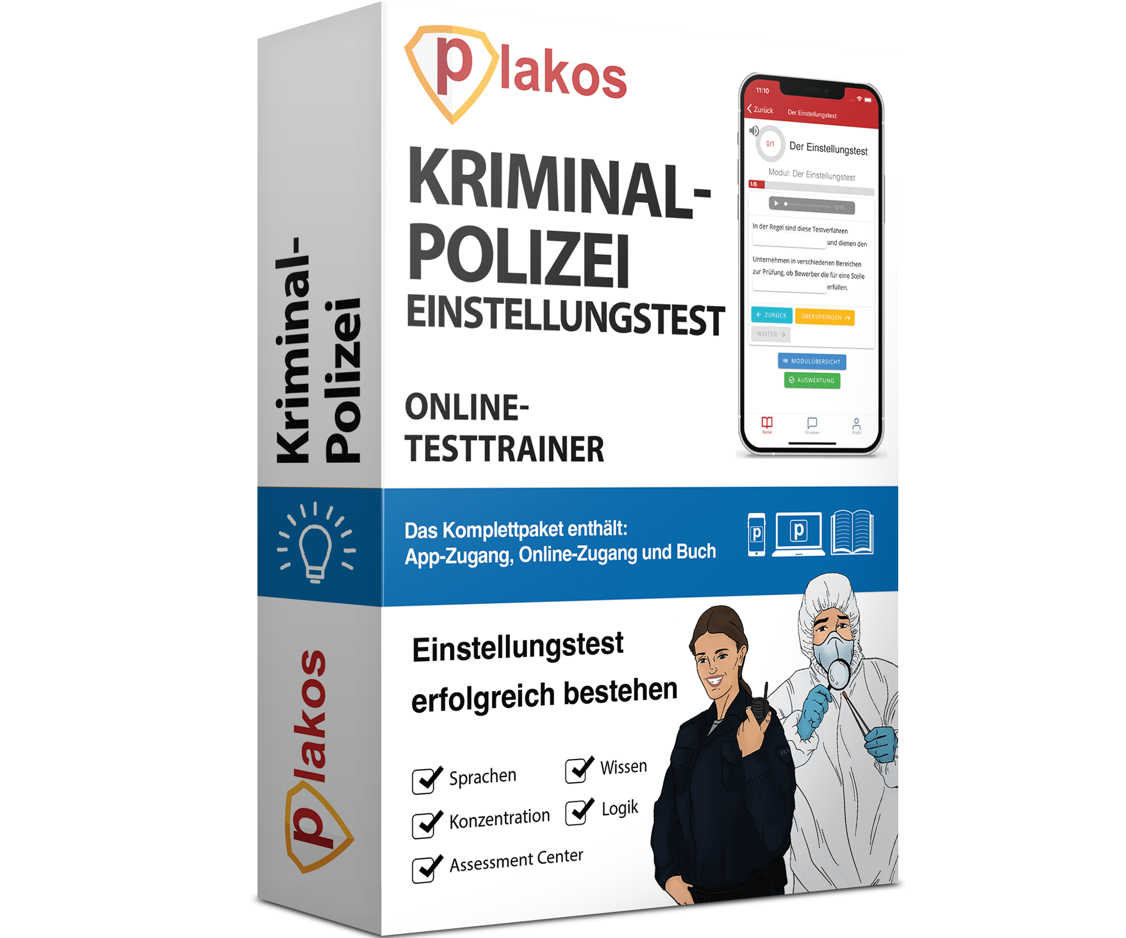 Du möchtest für deinen Kriminalpolizei Einstellungstest trainieren? Das Kriminalpolizei Einstellungstest Online-Testtrainer Komplettpaket bietet dir die perfekte Vorbereitung auf den Einstellungstest und hilft dir, deine Nervosität zu besiegen!