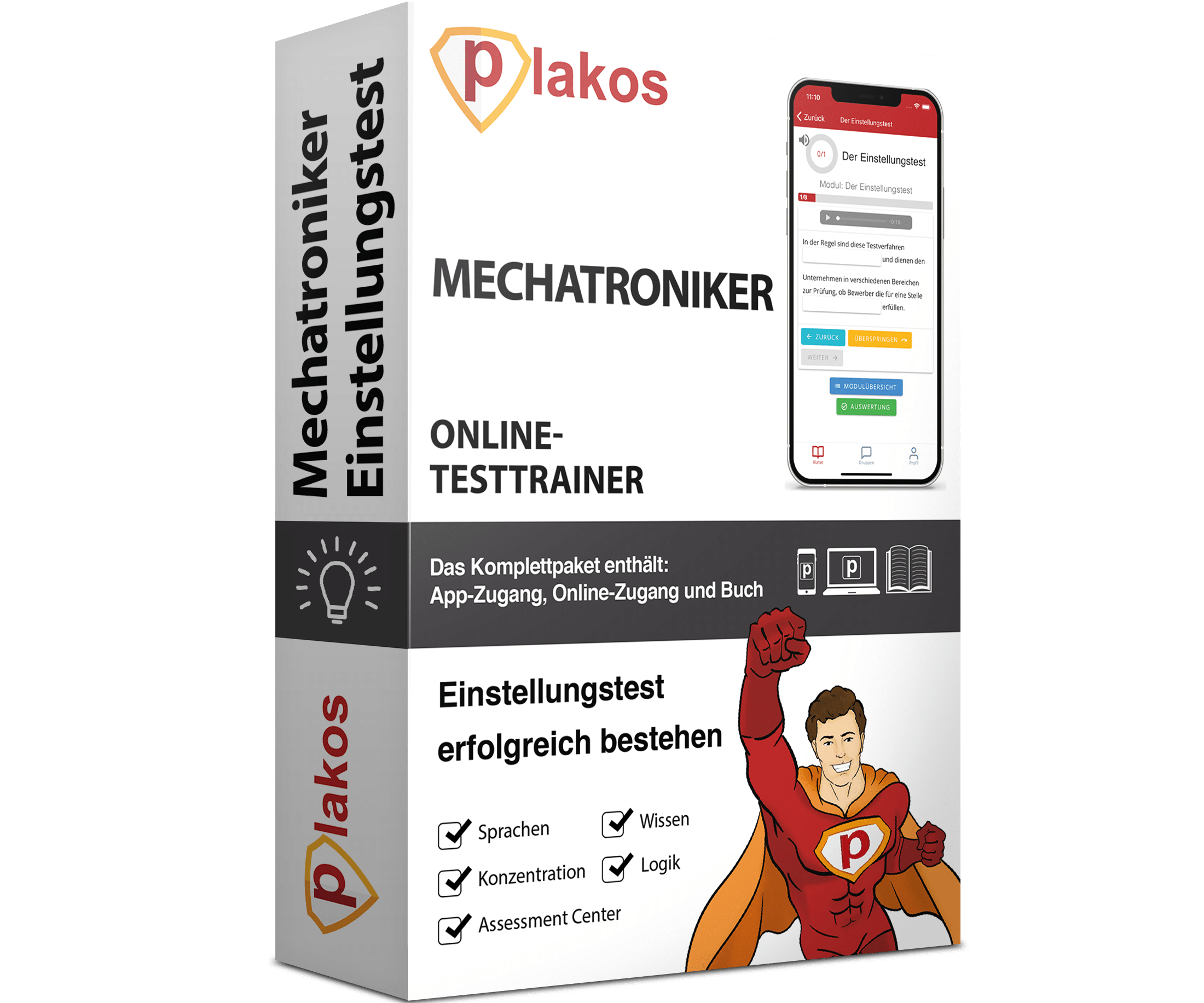 Wir von Plakos bieten dir die Möglichkeit, dich gezielt auf den Einstellungstest vorzubereiten. Zusammen mit Experten haben wir Testfragen und Methoden entwickelt, die Bewerber optimal auf mögliche Prüfungssituationen vorbereiten. Für Mechatroniker bieten wir einen Online-Vorbereitungskurs an, wo du u.a. die Möglichkeit hast, dich mit anderen Nutzern auszutauschen oder dich realitätsnah auf ein Assessment Center vorzubereiten. So steht einem erfolgreichen Ausgang deines Bewerbungsverfahrens nichts mehr im Wege. Die Links zu unseren Produkten findest du am Ende des Artikels. Plakos wünscht dir viel Spaß beim Üben!