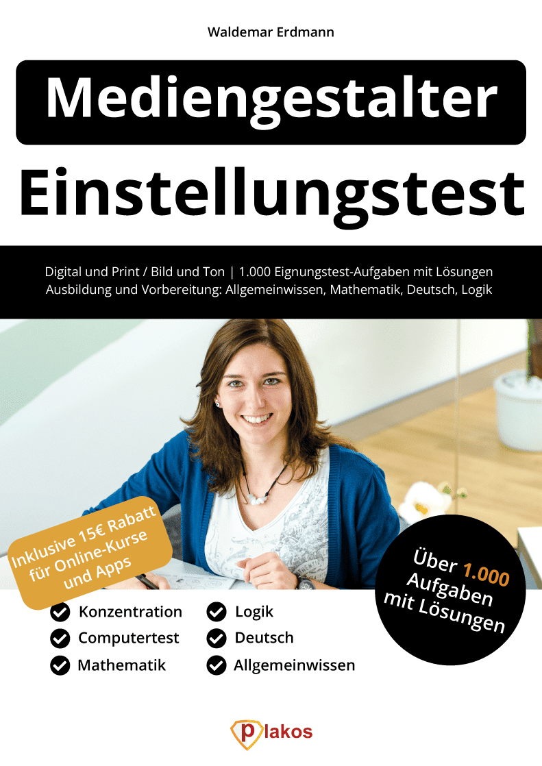 Der Mediengestalter Digital und Print/Bild und Ton ist ein beliebter Ausbildungsberuf in Deutschland. Jedes Jahr versuchen zehntausende junge Menschen, einen der begehrten Ausbildungsplätze zu bekommen. Viele Bewerber scheitern jedoch am Auswahlverfahren. Dieses kann unter anderem einen schriftlichen Einstellungstest beinhalten. Damit Du den Einstellungstest bestehst, haben wir ein Buch, basierend auf unseren Online-Programmen entwickelt.