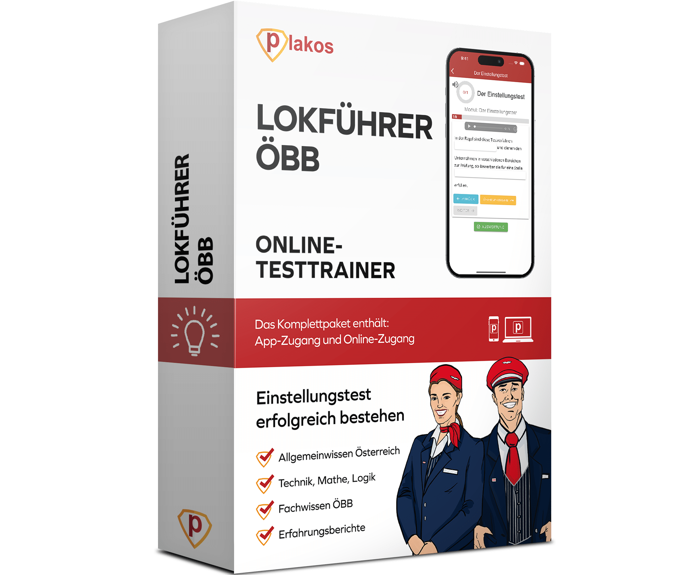 Online Prüfungsvorbereitung mit zahlreichen interaktiven Übungsaufgaben und Lerneinheiten – die perfekte Vorbereitung auf Lokführer ÖBB Einstellungstest. Starte selbstbewusst in die Prüfung! Jetzt inklusive Plakos KI-Trainer!