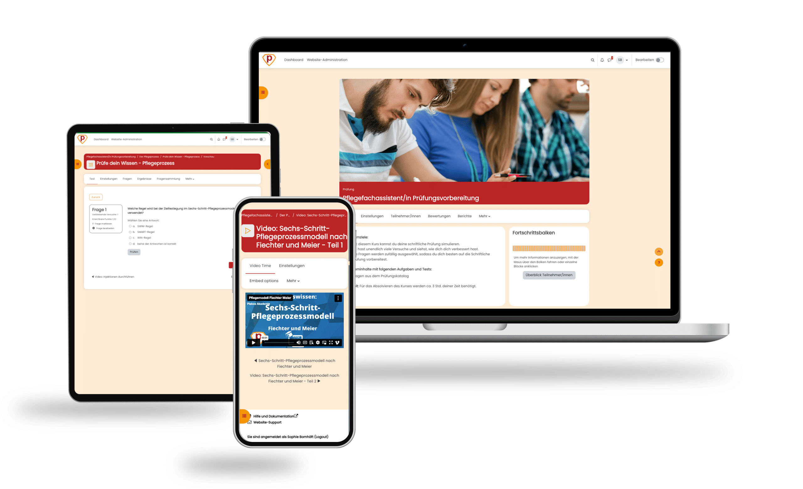Denn wir bereiten dich in unserem Kurs optimal auf die Pflegefachassistenz Prüfungsfragen vor. Unser Testtrainer enthält nicht nur hunderte Übungsaufgaben und interaktive Tests mit Lösungen, sondern auch nützliche Erklärvideos, Insidertipps sowie unsere Prüfungssimulation. Zusätzlich erhältst du einen Zugang zu unserer App, mit welcher du bequem und effizient von unterwegs aus lernen kannst.