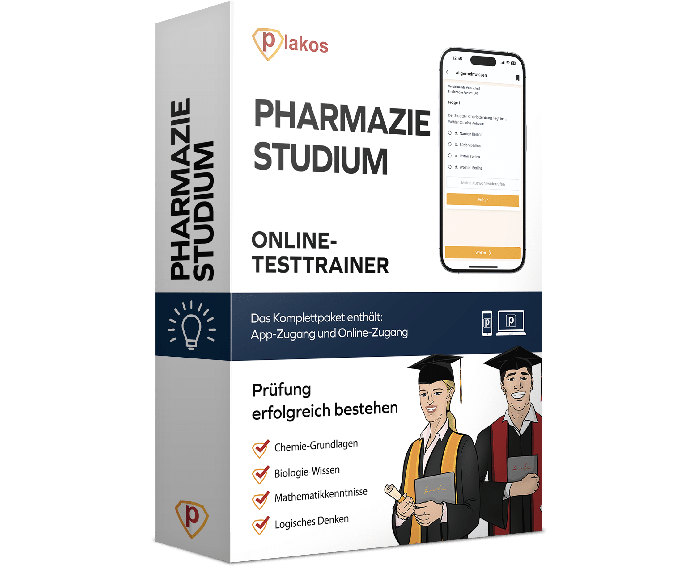 Online Prüfungsvorbereitung mit zahlreichen interaktiven Übungsaufgaben und Lerneinheiten – die perfekte Vorbereitung auf dein Pharmazie Studium. Starte selbstbewusst in deine Prüfung! Jetzt inklusive dem Plakos KI Assistenten.