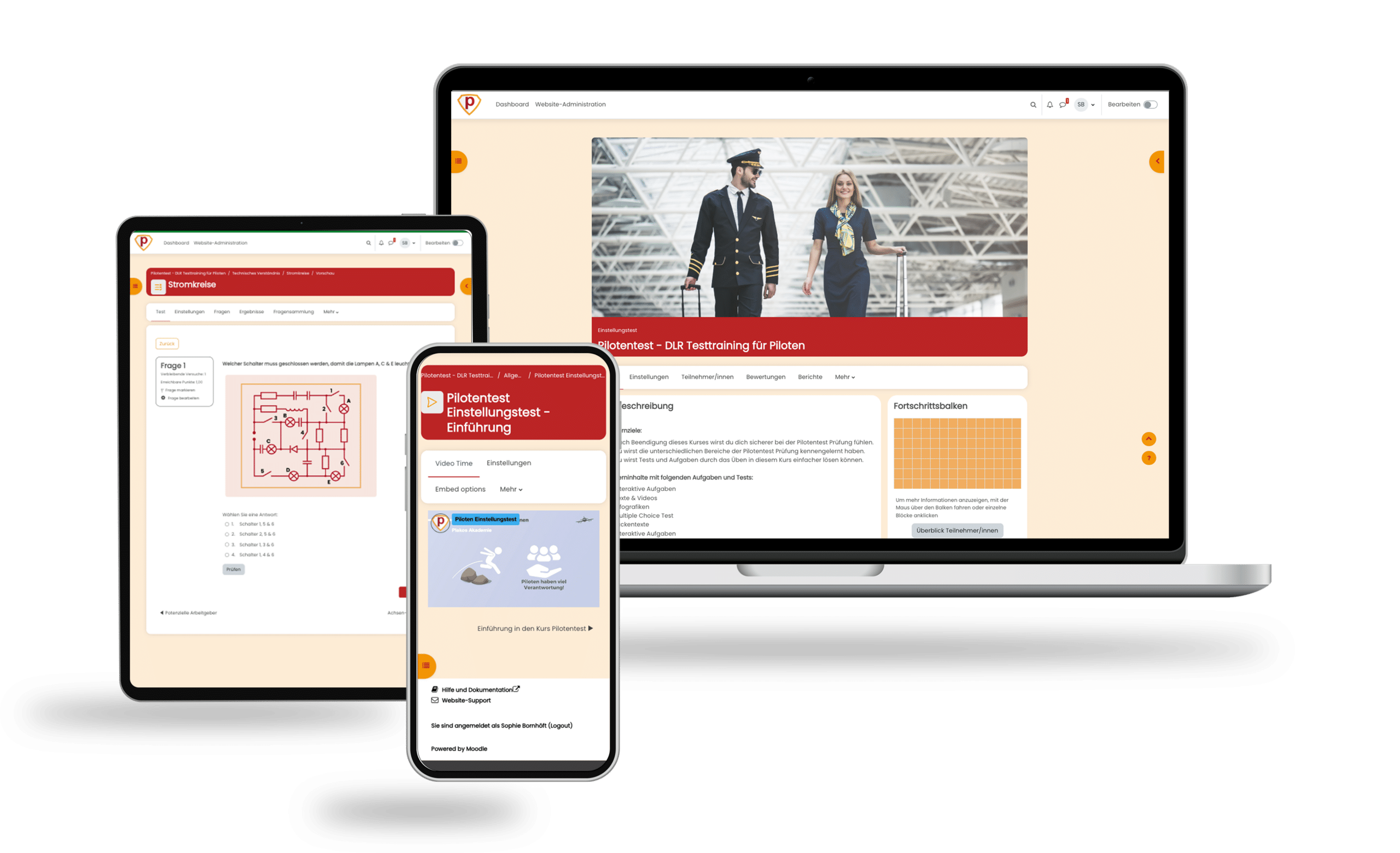 Wir bereiten dich in unserem Kurs optimal auf den Pilotentest vor. Unser Testtrainer enthält nicht nur hunderte Übungsaufgaben und interaktive Tests mit Lösungen, sondern auch nützliche Erklärvideos und Insidertipps, die dir helfen, dich bestens auf alle Bereiche des DLR Tests vorzubereiten.