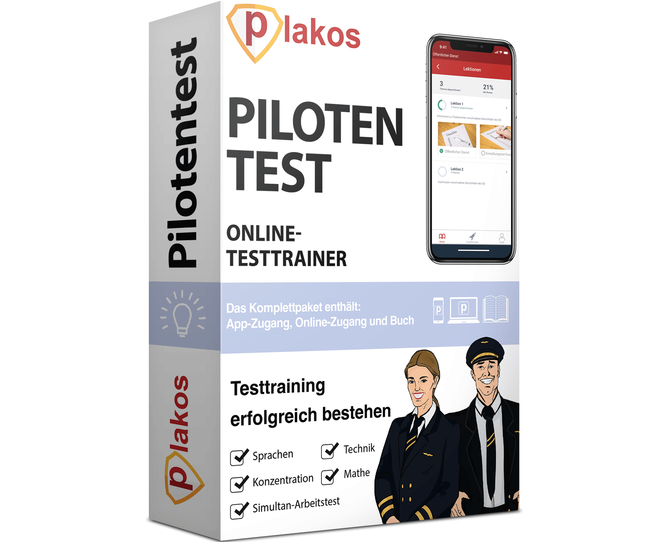Der „plakos PILOTENTEST“ soll vorab darauf vorbereiten, die erste und dritte von fünf Phasen der Eignungsuntersuchung zu bestehen.