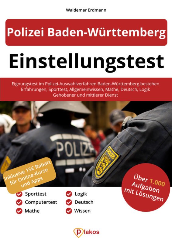 Aufgrund der hohen Bewerberzahlen bei der Polizei in Baden-Württemberg ist die Durchfallquote extrem hoch. Wir haben daher ein Buch entwickelt, das Dir bei Deinen Vorbereitungen auf den Test helfen soll. Du möchtest Karriere bei der Polizei Baden-Württemberg machen? Du möchtest den Polizei-Einstellungstest Baden-Württemberg bestehen? Dann empfehlen wir Dir dieses Vorbereitungsbuch.