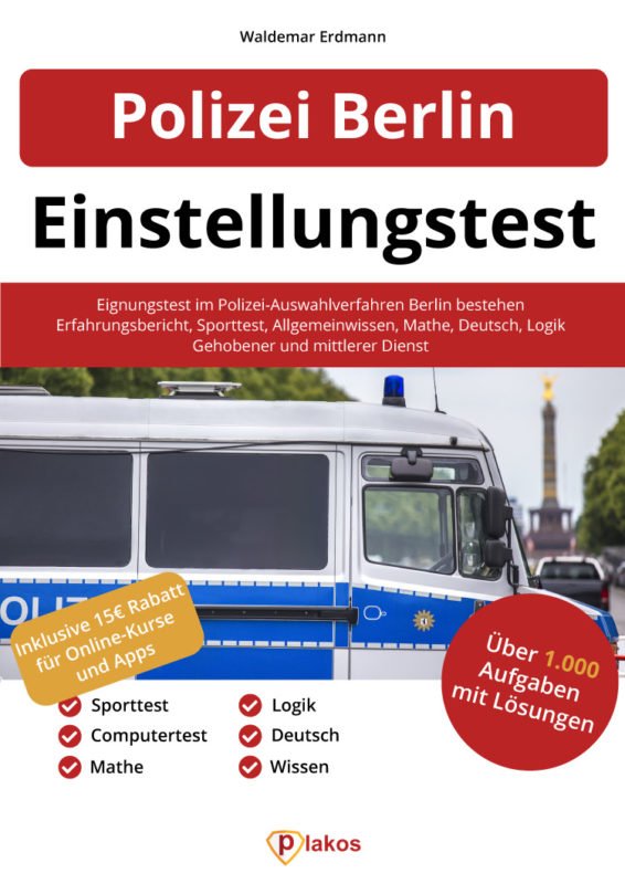 Aufgrund der hohen Bewerberzahlen bei der Polizei in Berlin ist die Durchfallquote extrem hoch. Wir haben daher ein Buch entwickelt, das Dir bei Deinen Vorbereitungen auf den Test helfen soll. Du möchtest Karriere bei der Polizei in Berlin machen? Du möchtest den Berliner Polizei-Einstellungstest bestehen? Dann empfehlen wir Dir dieses Vorbereitungsbuch.