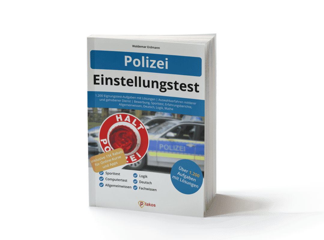 Aufgrund der hohen Bewerberzahlen bei der Polizei ist die Durchfallquote hoch. Wir haben daher ein Buch entwickelt, das Dir bei Deinen Vorbereitungen auf den Test helfen soll. Du möchtest Karriere bei der Polizei machen? Du möchtest den Polizei-Einstellungstest bestehen? Dann empfehlen wir Dir dieses Vorbereitungsbuch.