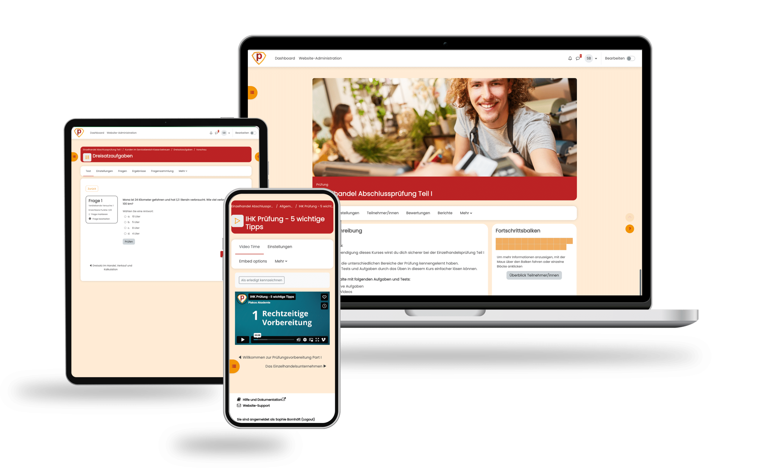 Online Prüfungsvorbereitung mit zahlreichen interaktiven Übungsaufgaben, Videokursen und Lerneinheiten – die perfekte Vorbereitung auf die Abschlussprüfung + mündlicher Prüfung im Einzelhandel. Starte selbstbewusst in deine Prüfung!