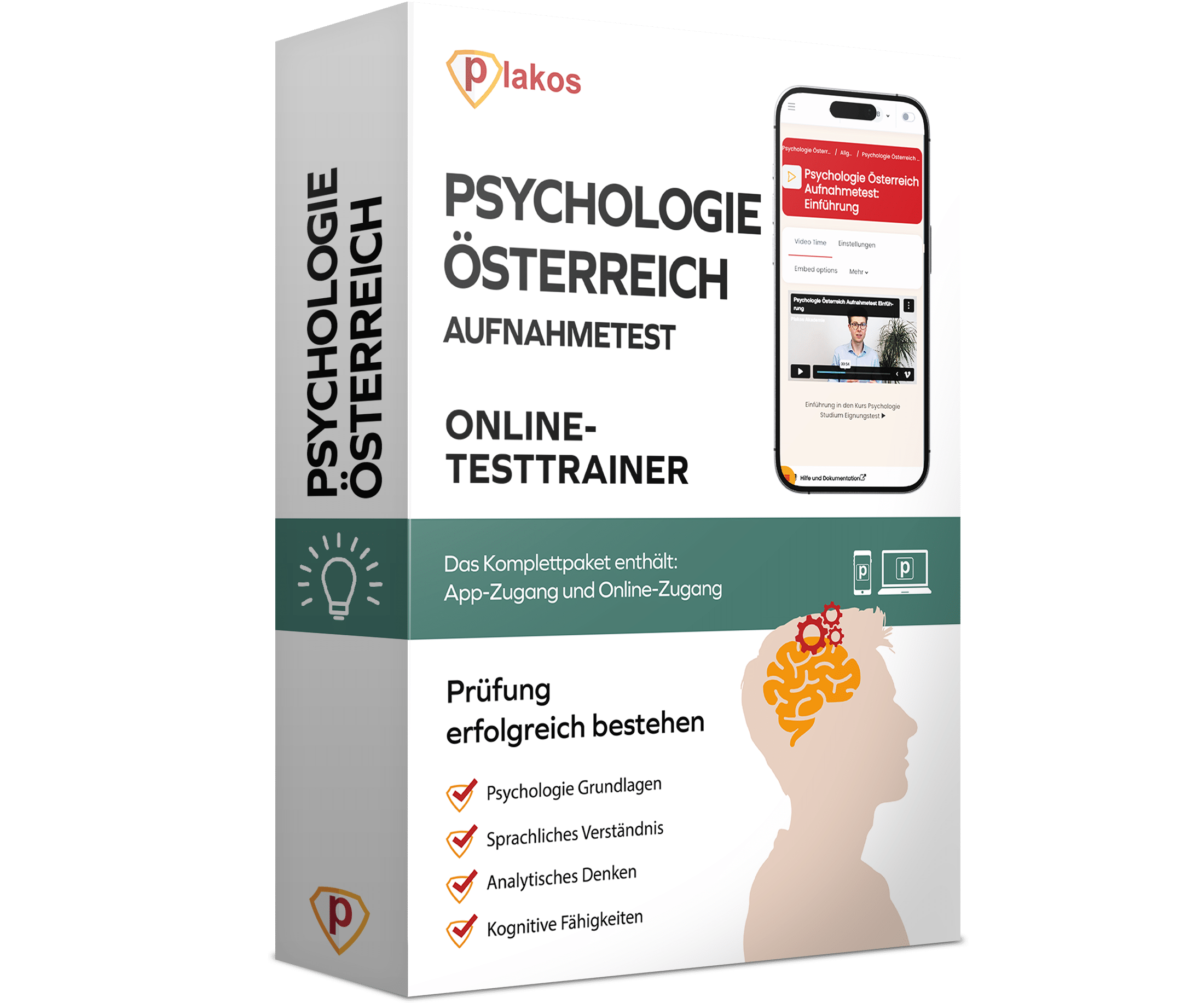 Bereite Dich jetzt mit dem Plakos Online-Testtrainer optimal auf Deinen Psychologie Aufnahmetest in Österreich vor, bequem mit Deinem Smartphone oder Laptop! Trainiere mit zahlreichen interaktiven Übungsaufgaben und besiege Deine Nervosität.