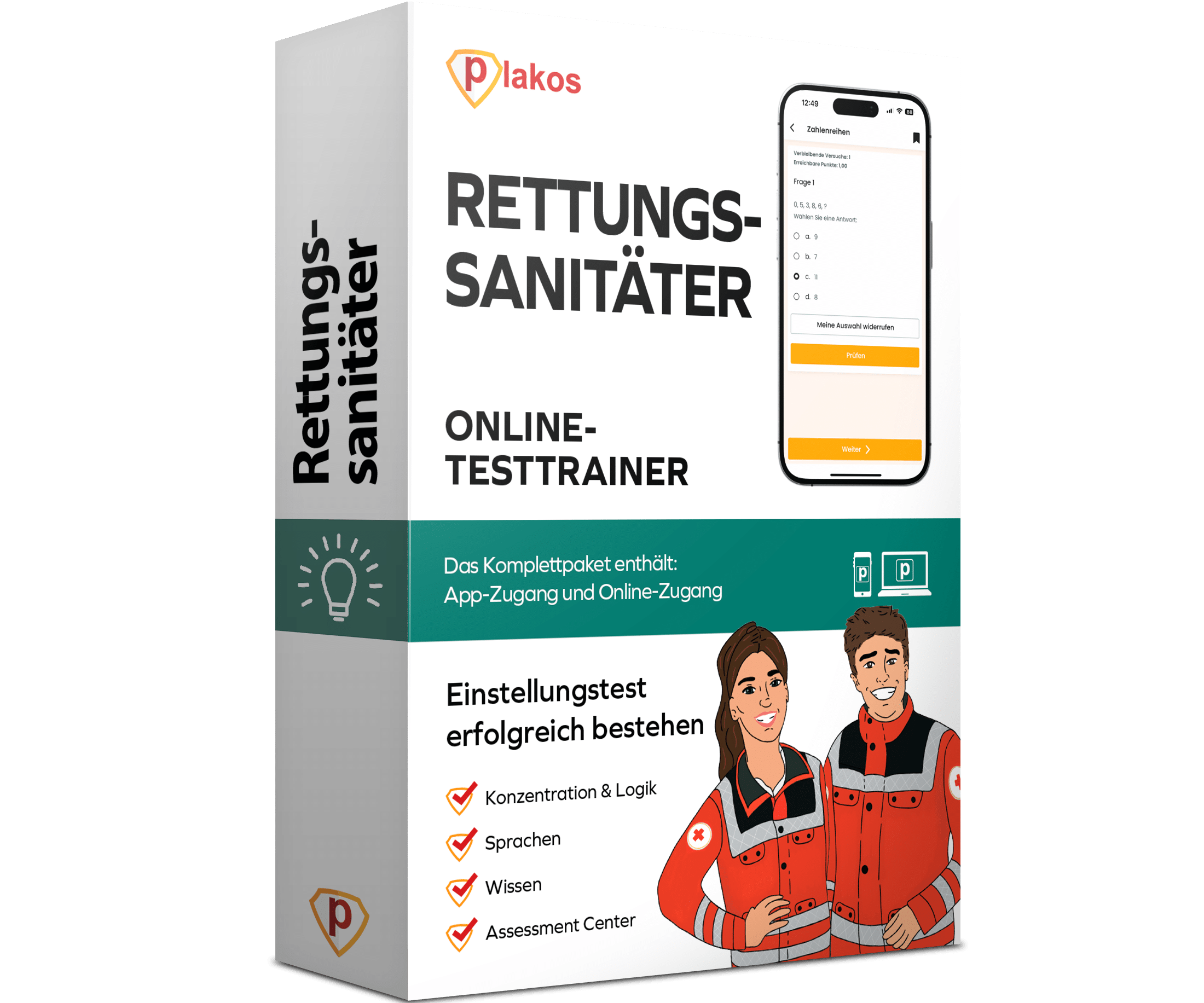 Einen Eignungstest für Rettungssanitäter gibt es in der Regel nicht. Du kannst Dich beispielsweise beim DRK (Deutsches Rotes Kreuz) anmelden und erhältst eine Zusage, falls noch ein Platz frei ist und Du die notwendigen Voraussetzungen erfüllst. Bei der Berufsbezeichnung Notfallsanitäter handelt es sich hingegen um die höchste nicht-ärztliche Qualifikation im Bereich des Rettungsdienstes. Entsprechend hoch sind die Anforderungen an die Bewerber, die Ihre Eignung in einem Notfallsanitäter-Einstellungstest unter Beweis stellen müssen. Wir bieten übrigens auch Online-Testtrainer für den Einstellungstest im Gesundheits- und Pflegebereich an.