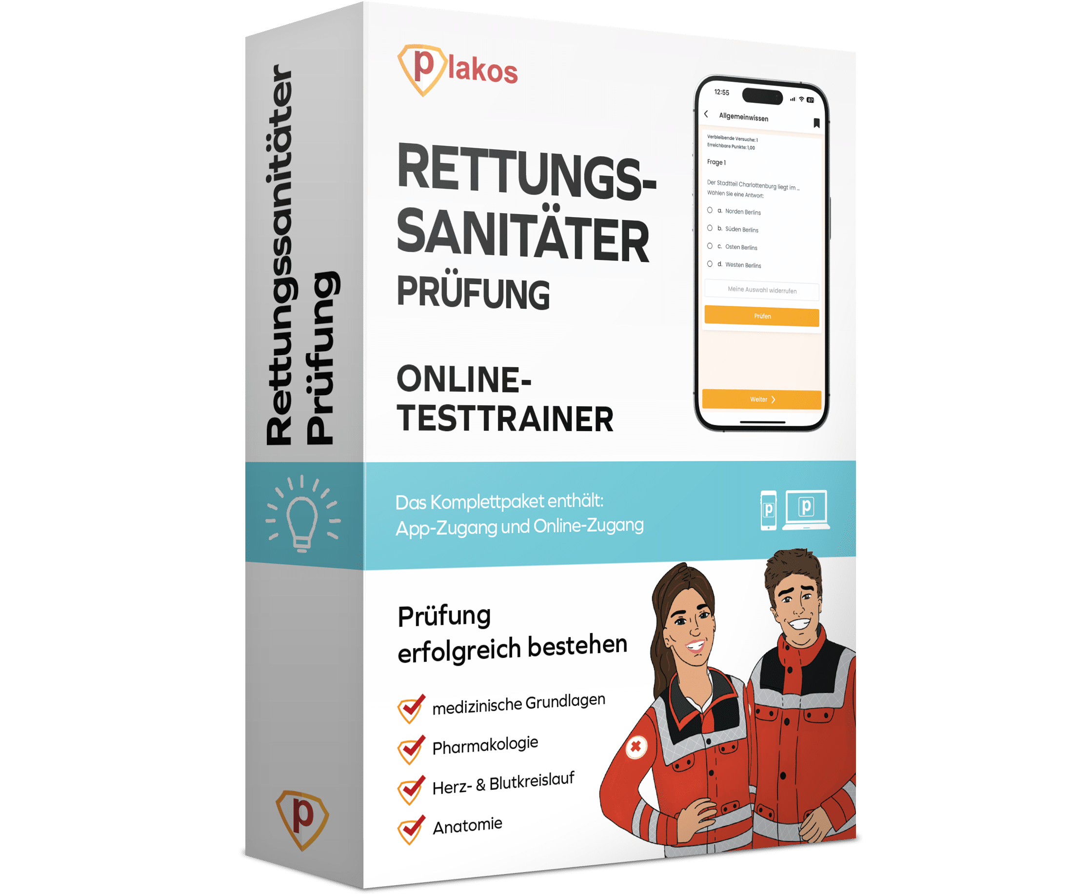 Online Prüfungsvorbereitung mit zahlreichen interaktiven Übungsaufgaben und Lerneinheiten – die perfekte Vorbereitung auf deine Rettungssanitäter Prüfung. Starte selbstbewusst in die Prüfung! Jetzt inklusive Plakos KI-Trainer!