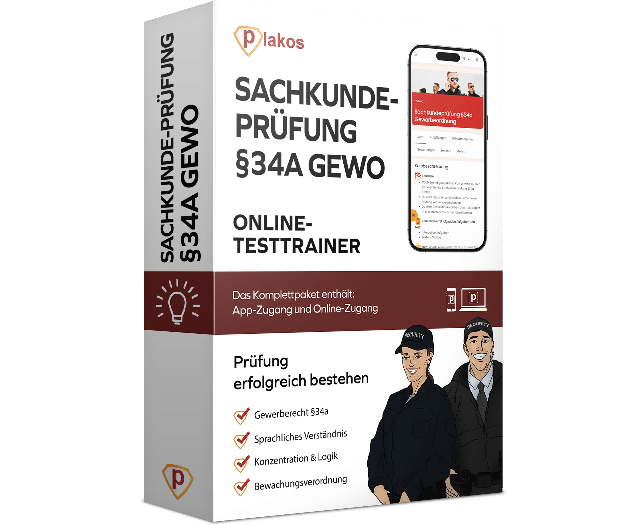 ✓ Bereite Dich mit dem Sachkundeprüfung 34a GewO Online-Testtrainer + App optimal auf Deine Prüfung vor.