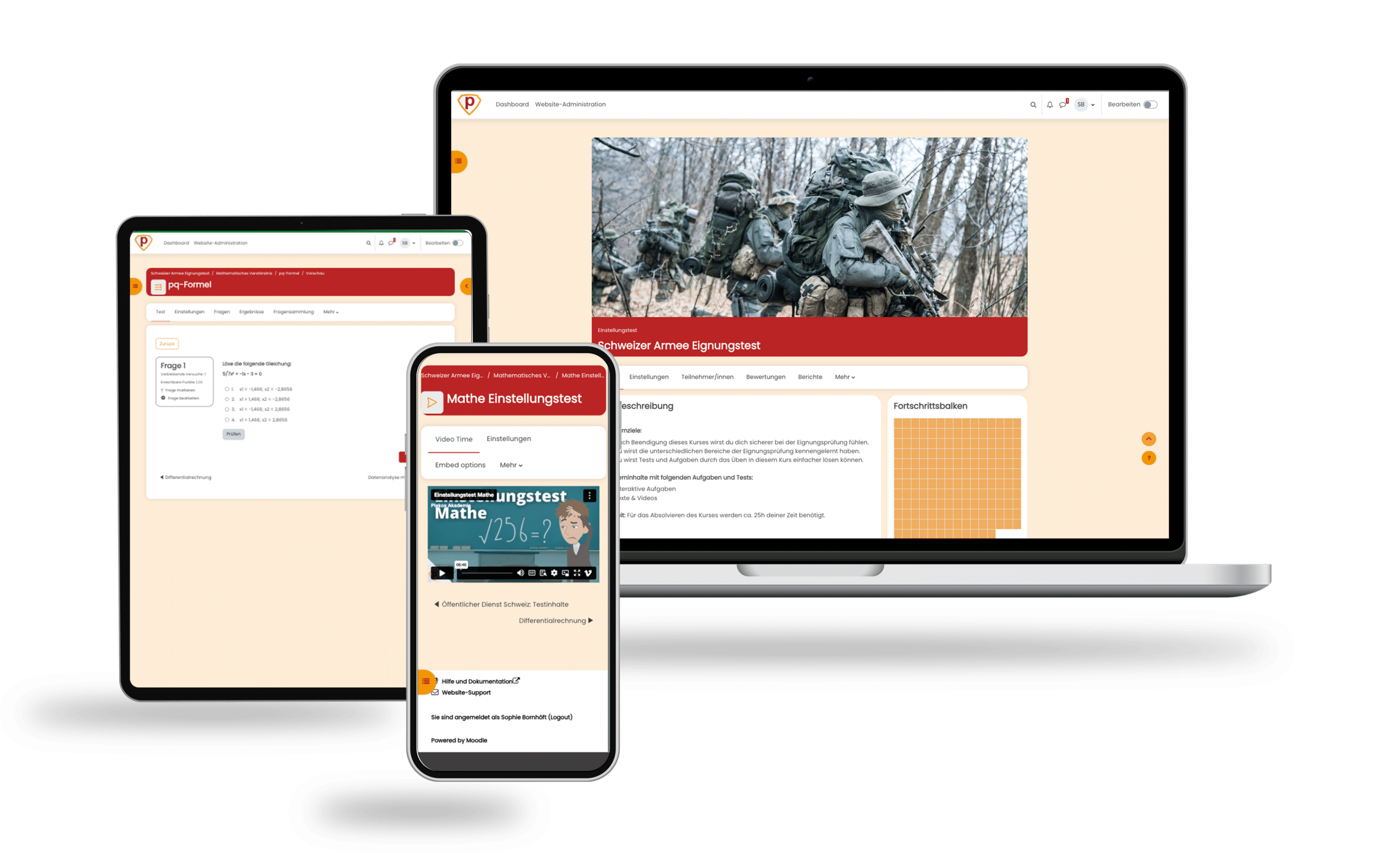 Trainiere mit zahlreichen interaktiven Übungsaufgaben, Videokursen und Insidertipps und gehe mit einem guten Gefühl in dein Auswahlverfahren bei der Schweizer Armee.