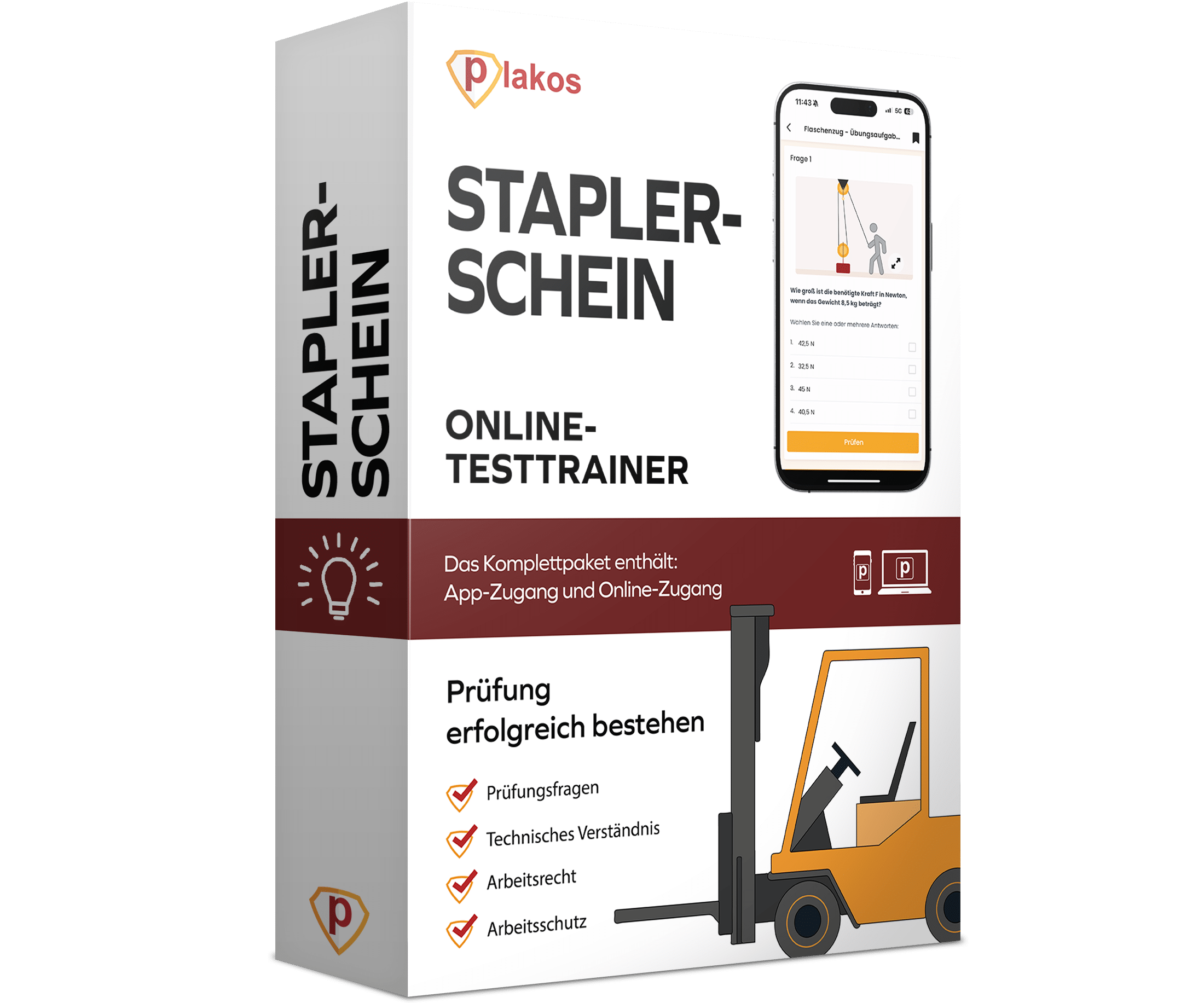 Bereite Dich jetzt mit dem Plakos Online-Testtrainer optimal auf Deinen Staplerschein vor, bequem mit Deinem Smartphone oder Laptop! Trainiere mit zahlreichen interaktiven Staplerschein Prüfungsfragen und besiege Deine Nervosität.