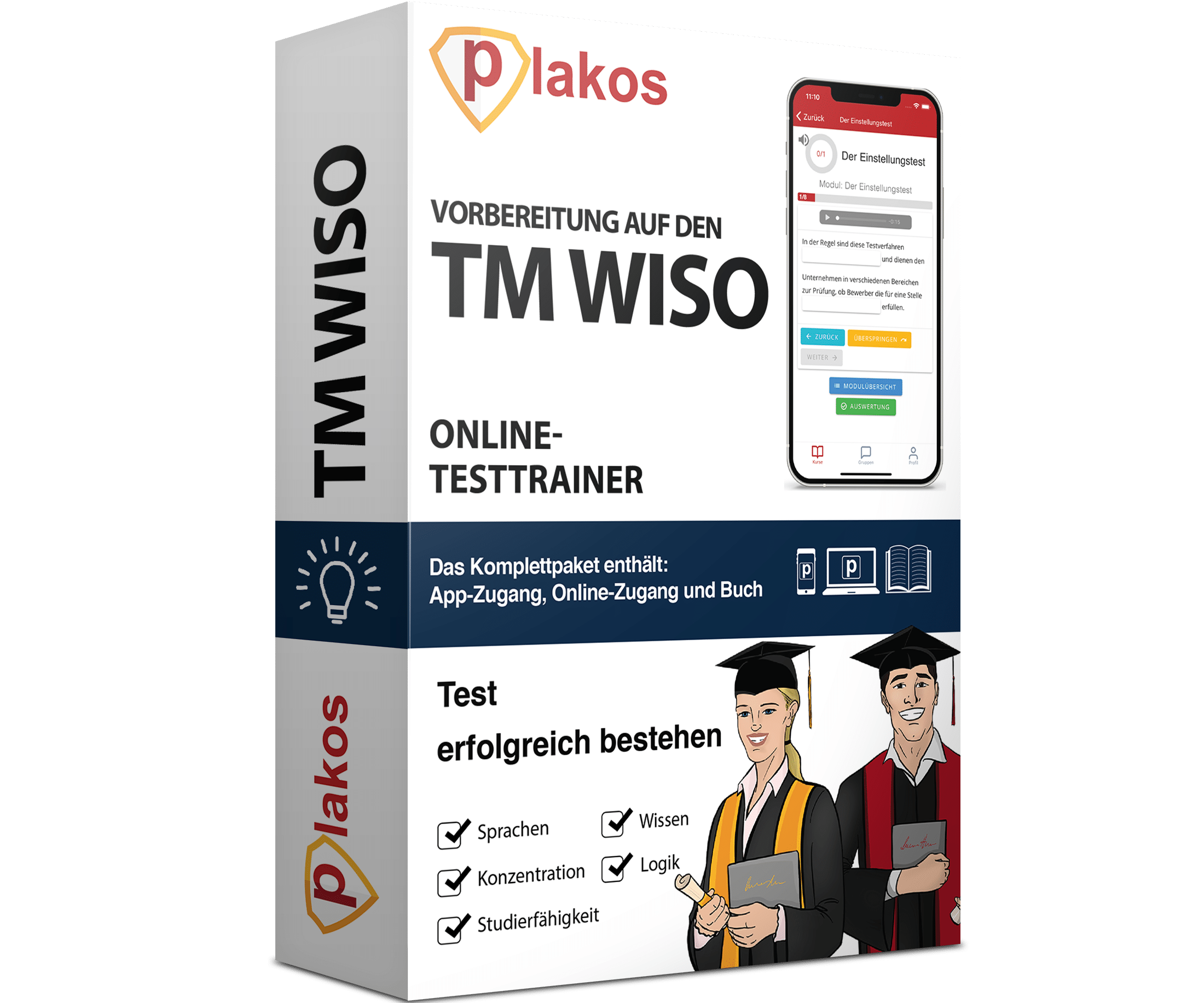 Das Online-Testtrainer Komplettpaket von Plakos bietet Dir das optimale Training für den TM-WISO und hilft Dir, Deine Nervosität zu besiegen.
