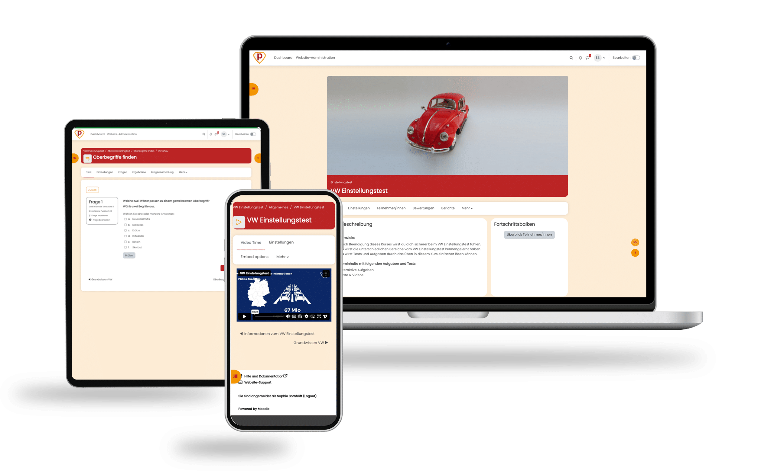 Hinweis: Der Online-Testtrainer von Plakos beinhaltet keine Original-Testfragen aus dem VW Einstellungstest, noch wurde/wird dieser in Zusammenarbeit mit VW entwickelt/angeboten.