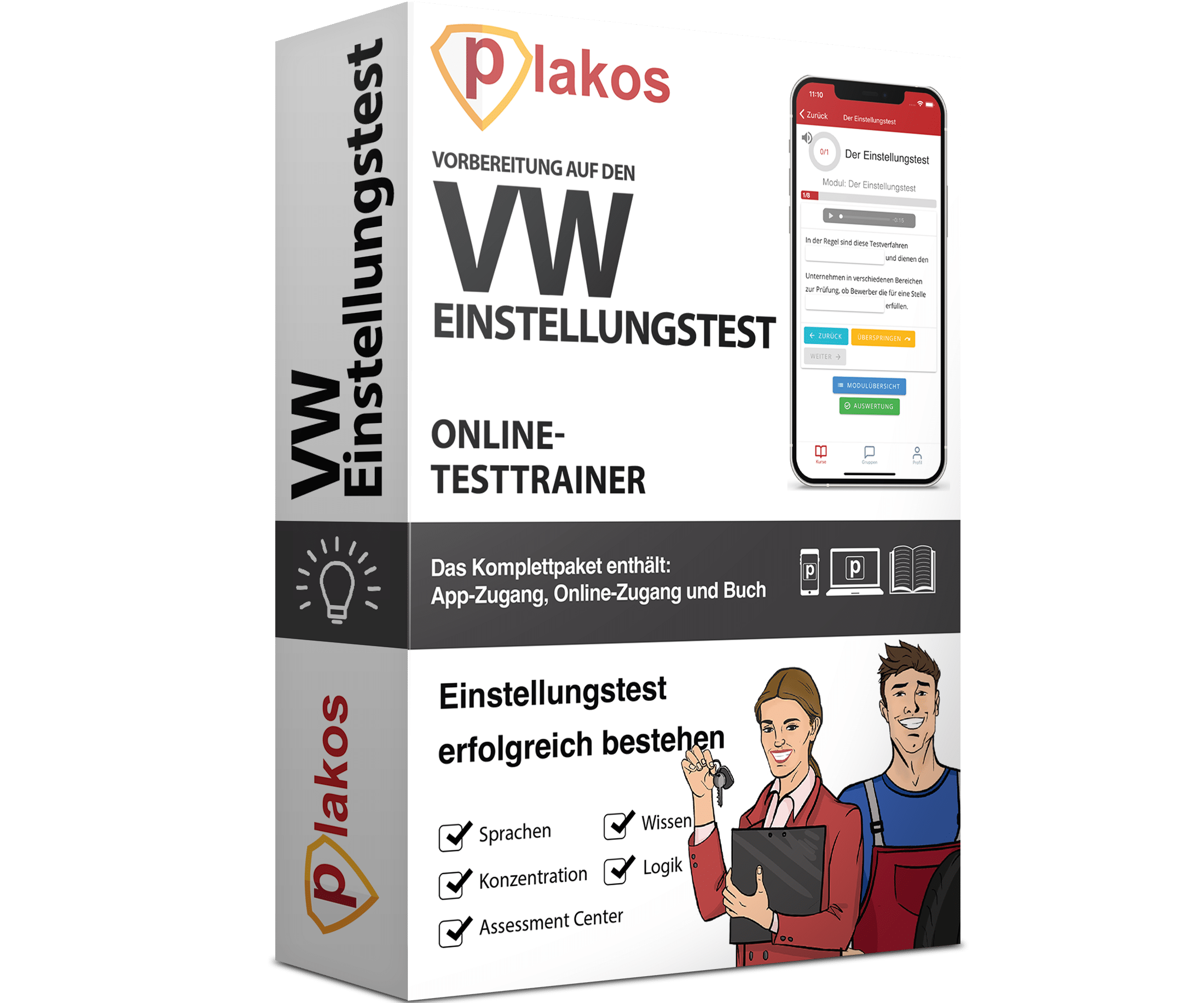 Das Online-Testtrainer Komplettpaket von Plakos bietet dir die perfekte Vorbereitung für den VW Einstellungstest. Wir machen dich mit den verschiedenen Aufgabengruppen vertraut und helfen dir dabei, deine Nervosität zu besiegen.