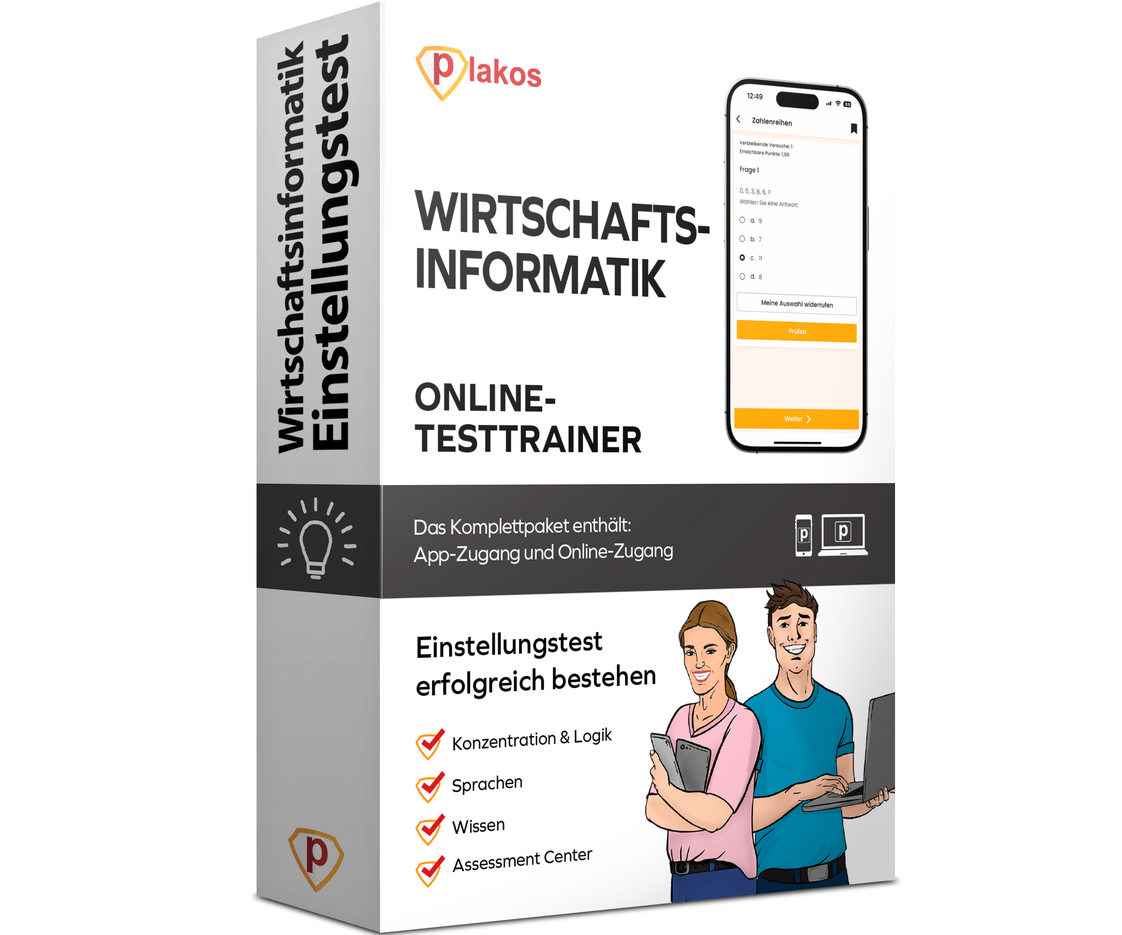 Online Einstellungstest-Vorbereitung mit zahlreichen interaktiven Übungsaufgaben und Lerneinheiten – die perfekte Vorbereitung auf deinen Einstellungstest. Starte selbstbewusst in die Prüfung! Jetzt inklusive Plakos KI-Trainer!