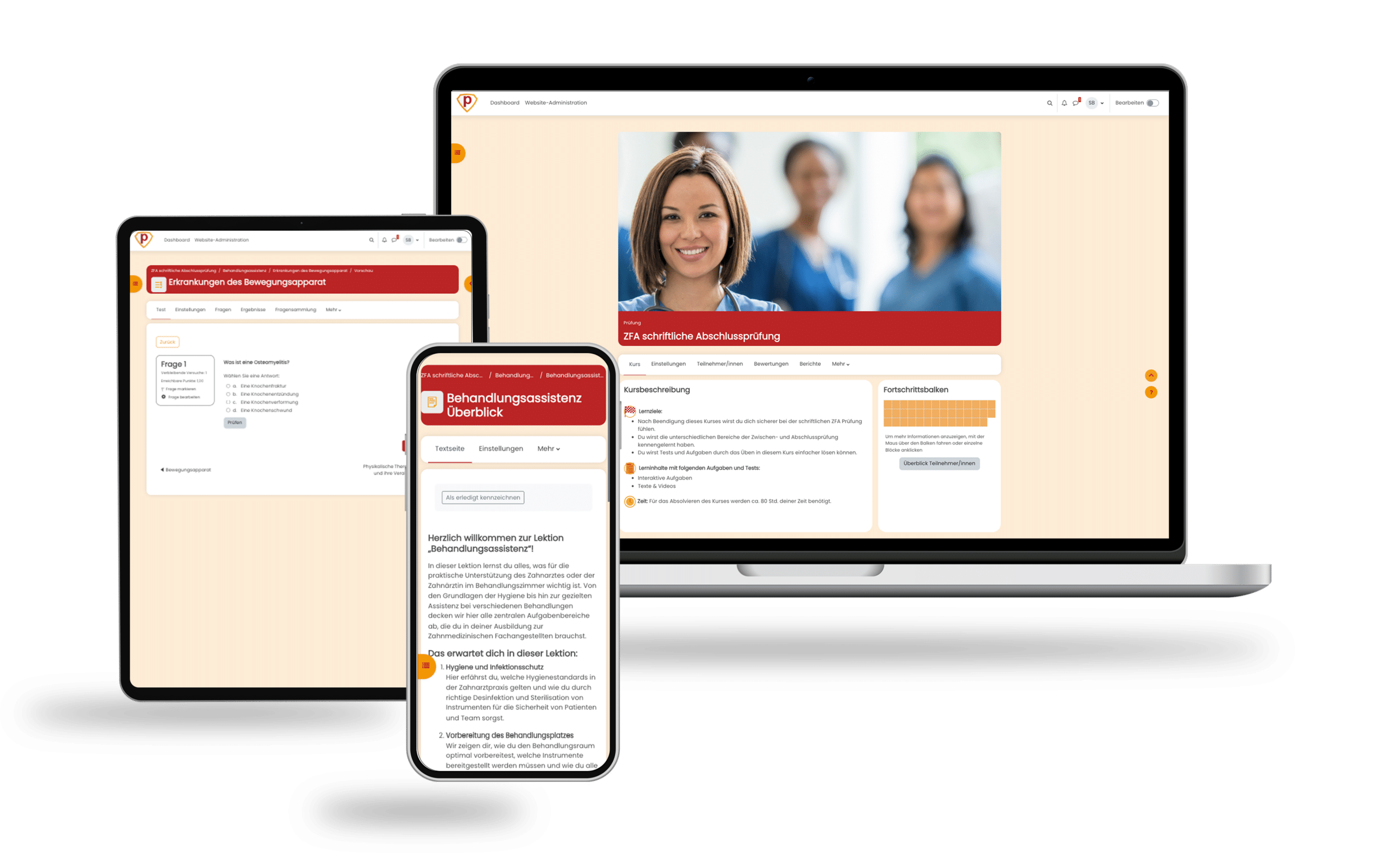 Unser Online-Testtrainer bietet dir eine optimale Vorbereitung auf die schriftliche ZFA-Abschlussprüfung. Mit einer Vielzahl von prüfungsnahen Aufgaben und Übungsaufgaben in allen relevanten Bereichen kannst du gezielt lernen und dein Wissen vertiefen. Der Testtrainer hilft dir, Lücken zu schließen, und gibt dir Sicherheit für die Prüfungssituation.