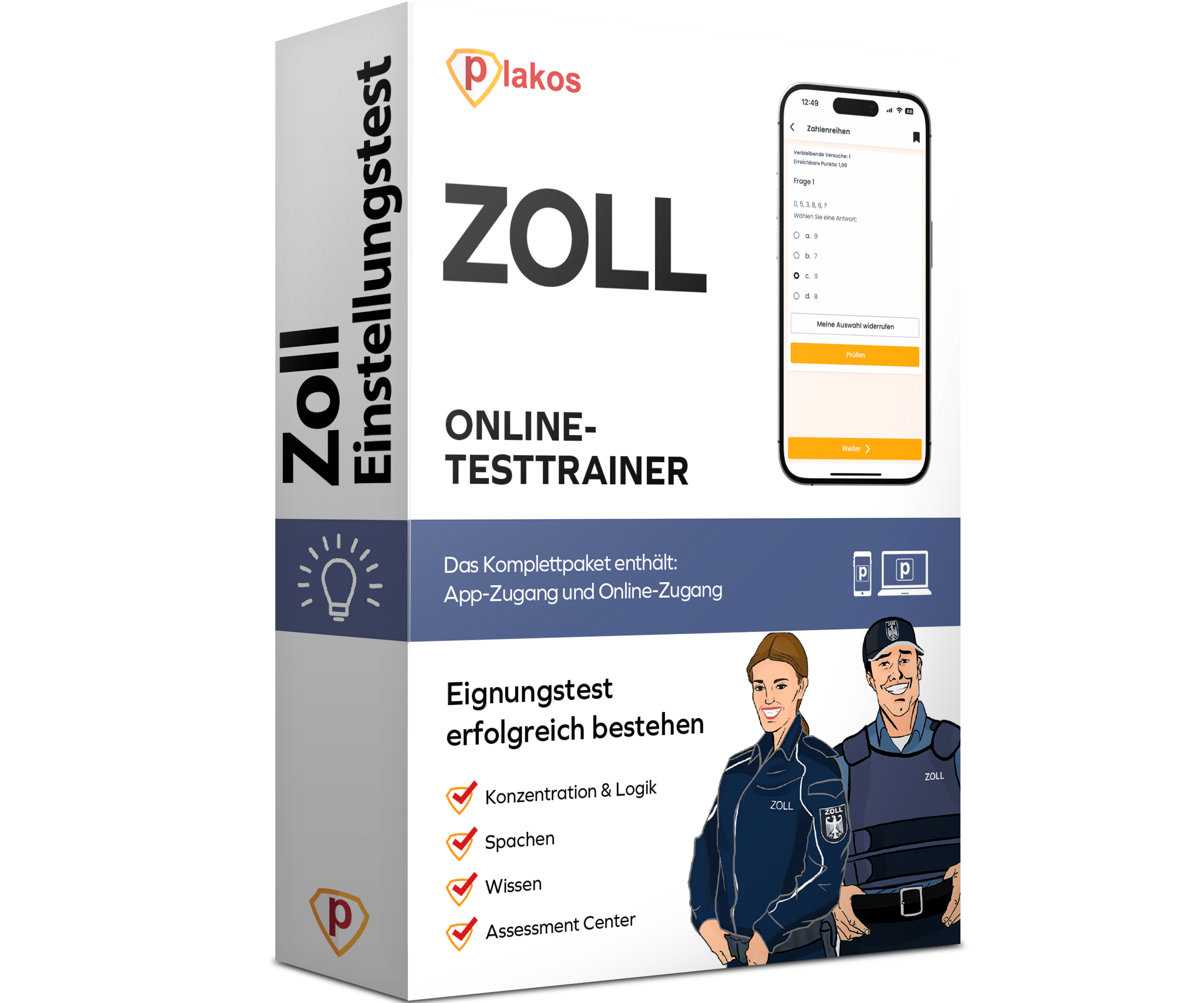 Wir bereiten Dich in unserem Kurs optimal auf den Einstellungstest beim Zoll vor. Unser Testtrainer enthält nicht nur hunderte Übungsaufgaben und interaktive Tests mit Lösungen, sondern auch wertvolle Erklärvideos und Insidertipps, die Dir helfen, bestens vorbereitet zu sein.
